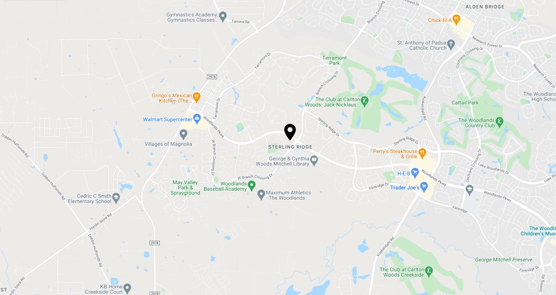 The Village of Sterling Ridge is located on the western side of The Woodlands and is known for its beautiful landscapes, extensive walking trails, a multitude of neighborhood parks, and fun community events. Sterling Ridge is home to both the Jack Nicklaus Signature Golf Course at Carlton Woods, and The Woodlands Country Club’s Player Course. Terramont Park is a popular destination that offers a dog park, tennis courts, soccer field, and Frisbee golf course, while Cranebrook Park offers a fun community swimming pool, as well as soccer and tennis. There are two village shopping centers in Sterling Ridge. Terramont Village Shopping Center, located on the southeast corner of Woodlands Parkway and FM 2978, is anchored by a Walmart Supercenter. Sterling Ridge Village Center, located on the northwest corner of Kuykendahl and Woodlands Parkway, has quite the assortment of shops and conveniences including a Kroger grocery store, CVS Pharmacy, Village Vet, UPS Store, Trudy’s Hallmark, and L’Avantage Hair Salon. A variety of great restaurants can also be found here including Perry’s Steakhouse, which is continuously voted one of the best restaurants in the area for its award-winning dishes and outstanding service. Sterling Ridge is zoned to highly-rated Conroe ISD public Schools. There are also multiple private schools to choose from in The Woodlands.